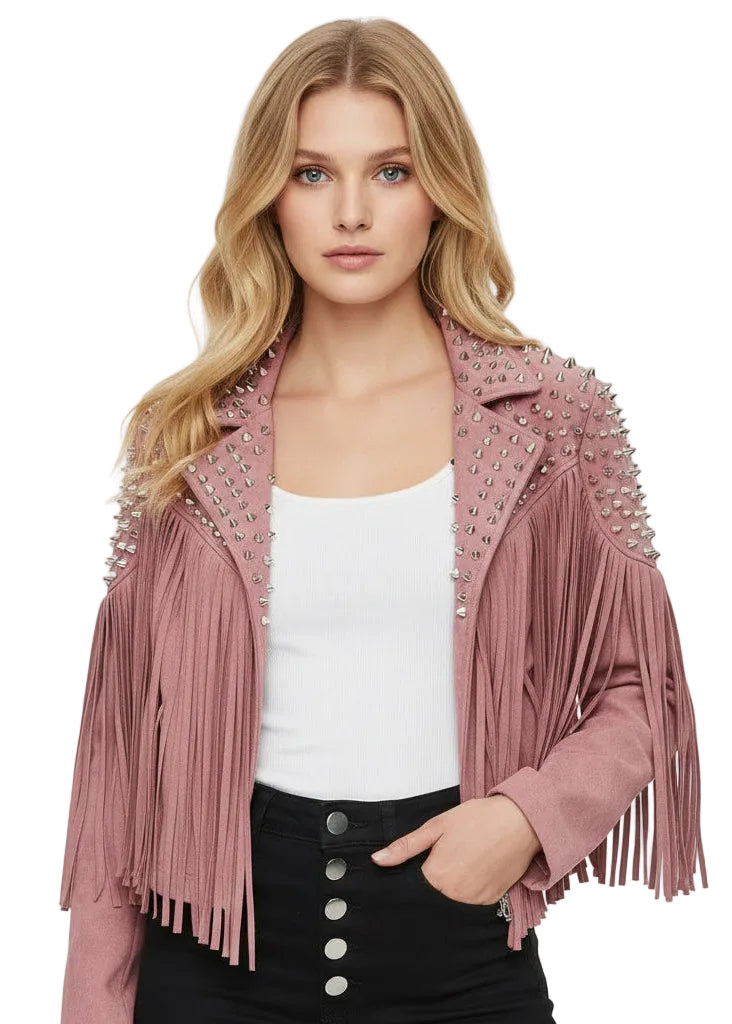 Studded Fringe Moto Jacket – Western Style Statement Jacket