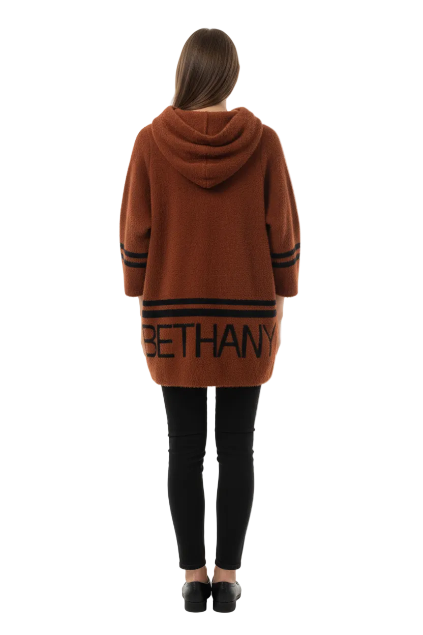 A statement longline cardigan designed to stand out. Featuring bold typography, graphic detailing, and a soft textured finish, this piece brings an effortless edge to everyday styling. Designed with an open front, functional buttons, front pockets, and a relaxed hood for added comfort and attitude. Easy to layer over casual or elevated looks.