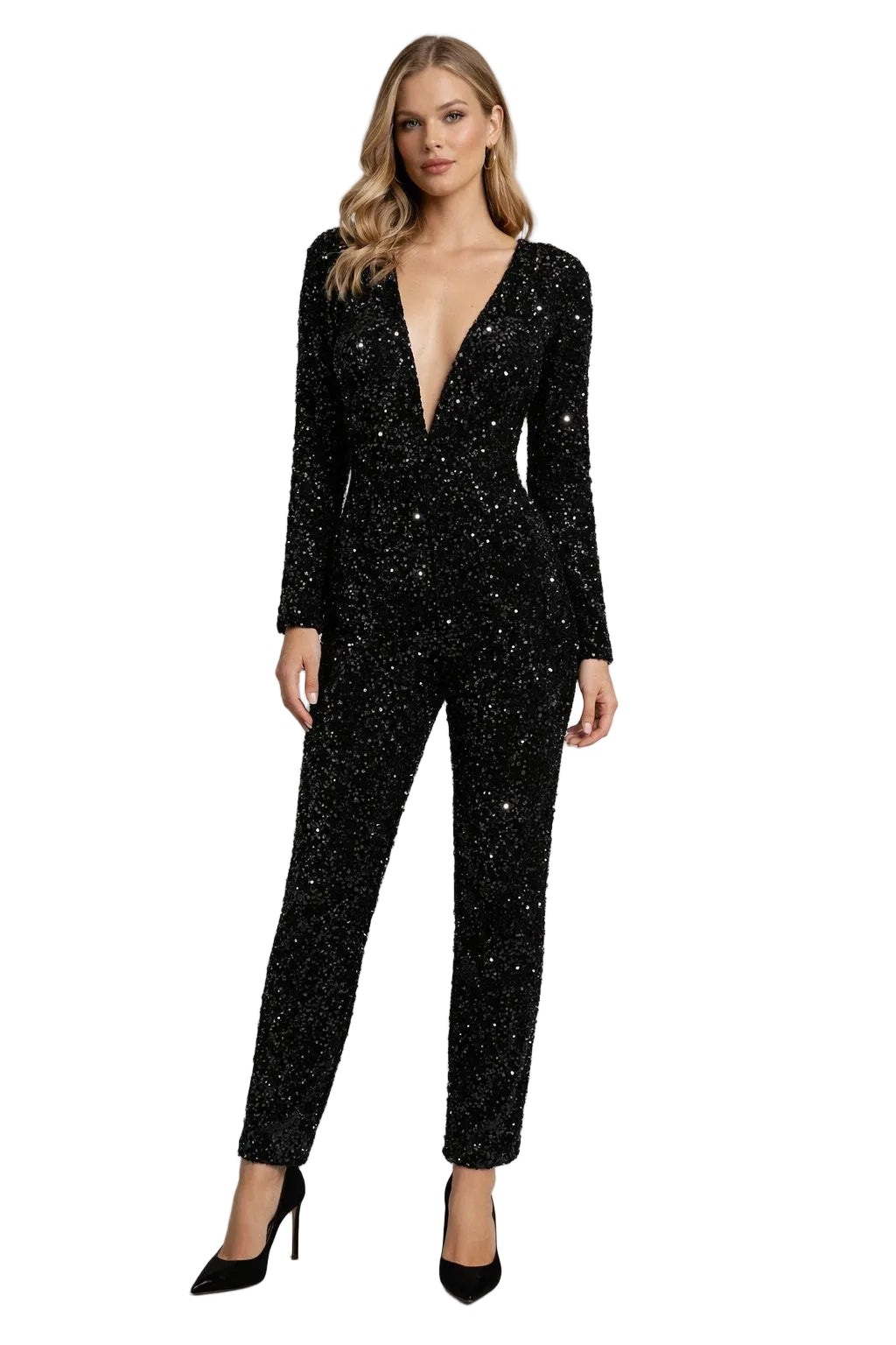 Black sequin jumpsuit | SHAILO JUMPSUIT BY RUNWAY SECRETS