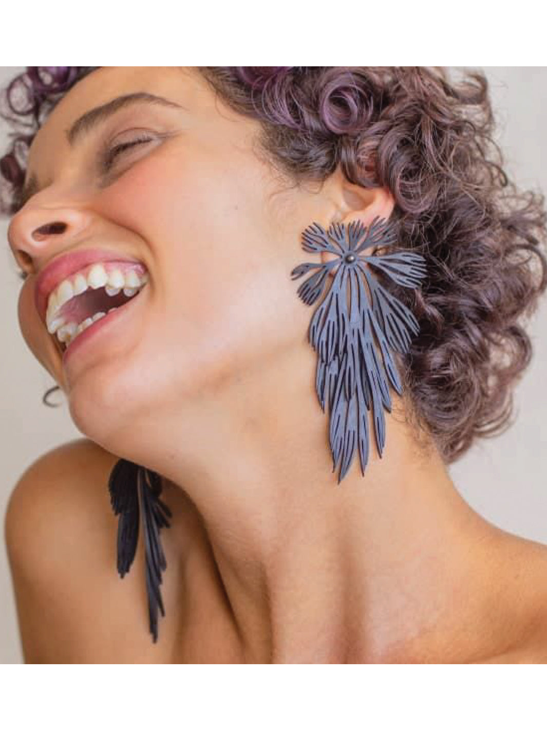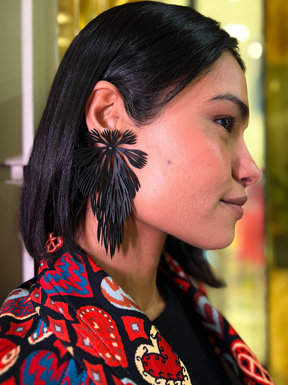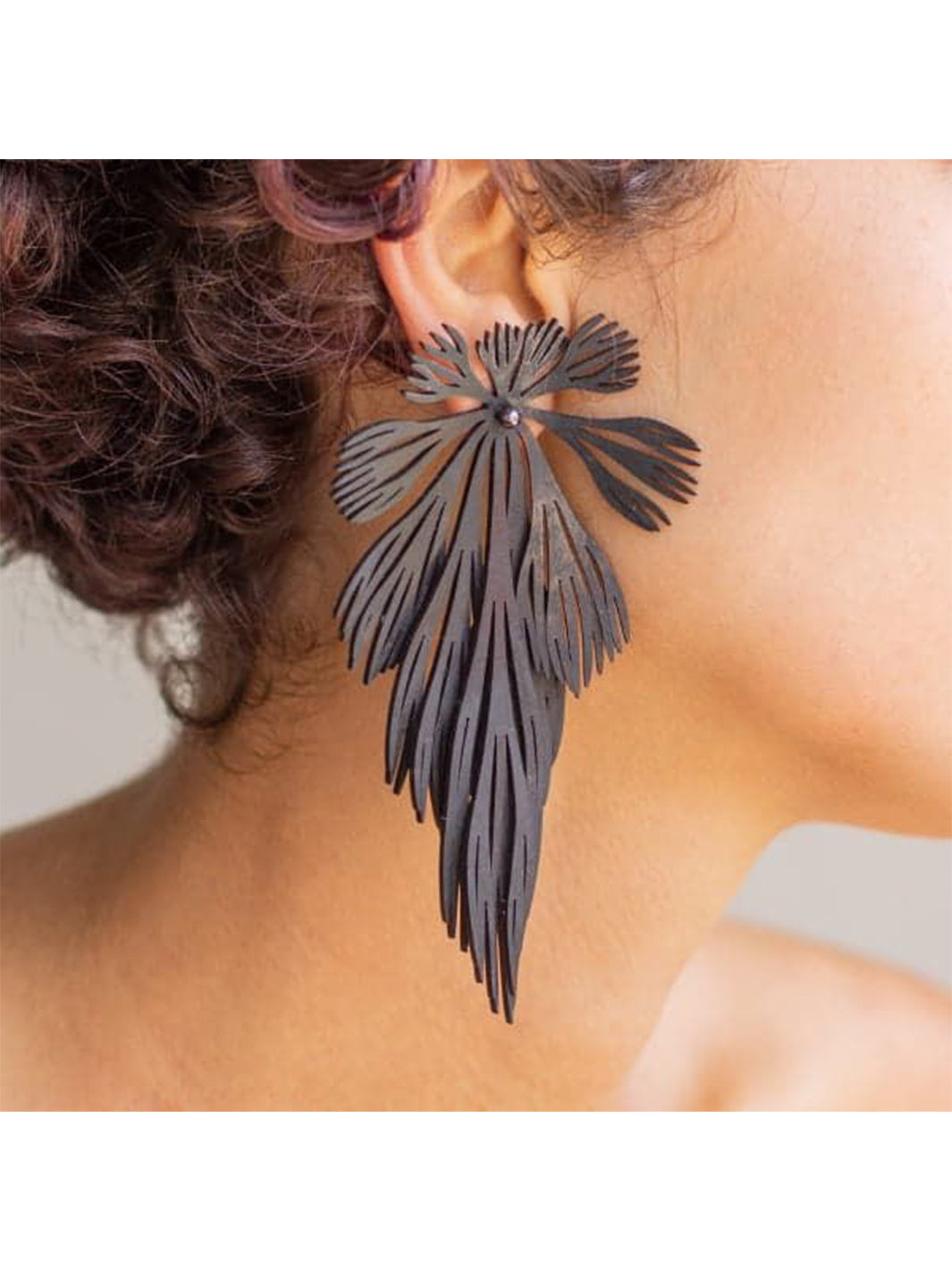 The lightweight charm, softness, feel of rubber jewellery make it an easy to wear accessory. Brazilian artists and designers Lia Mascarenhas, Menna Barreto, and  Mauro Fuke know this very well. The versatile accessories are perfect for those with a bit fleur. The pieces are complementary to the bodies – often resembling arty tattoos.